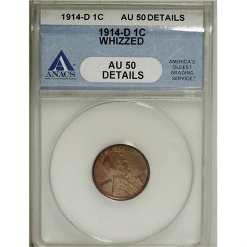 <B>1914-D 1C --Whizzed--ANACS. AU50 Details.</B></I> NGC Census: (40/309). PCGS Population (67/323). Mintage: 1,193,000. Numismedia Wsl. Price for NGC/PCGS coin in AU50: $1,090. (#2471)<BR><BR><B>Coin Engraver:</B> Victor D. Brenner<BR><BR><b>Shipping:</b> Coins & Currency (<a target="_blank" href="http://www.heritageauctions.com/common/shipping.php">view shipping information</a>)