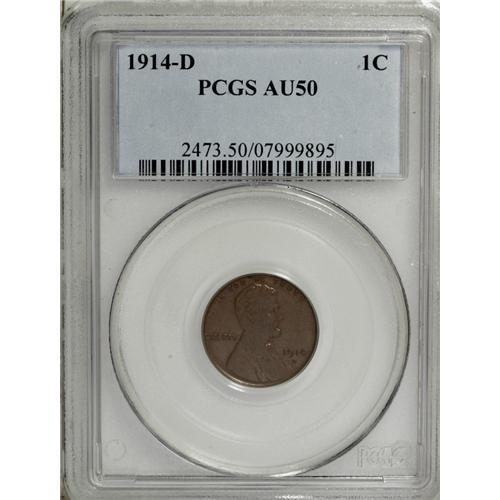 <B>1914-D 1C AU50 PCGS.</B></I> An attractive medium brown example with sharp design features on each side. A darker toning splash is noted on the reverse and both sides have the usual tiny handling marks expected at this grade level.<BR><BR><b>Shipping:</b> Coin/Currency (<a target="_blank" href="http://www.heritageauctions.com/common/shipping.php">view shipping information</a>)