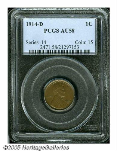 <B>1914-D<1C> AU58 PCGS.</B></I> An excellent example of this important date in the Lincoln Cent series, with glossy light brown surfaces through which modest original red color can still be seen. There is strong detail and no mentionable marks. Surprisingly scarce in this grade.
