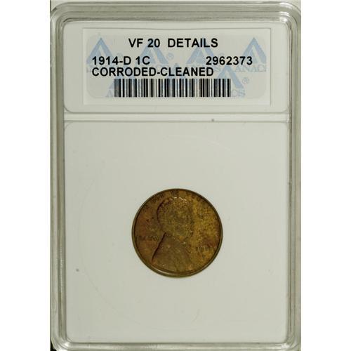 1914-D 1C --Cleaned, Corroded--ANACS. VF20 Details.