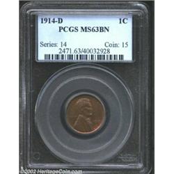 1914-D 1C MS63 Brown PCGS. With traces of red adhering to the periphery, this is a very attractive e