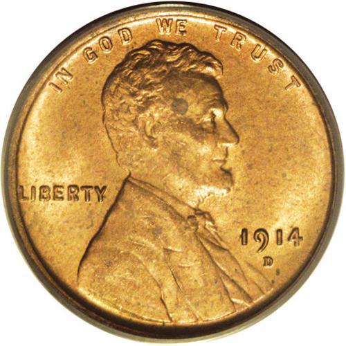 <B>1914-D<1C> MS64 Red PCGS.</B></I> Lustrous and nicely struck, this near-Gem shows attractive copper-tan coloration and minimally abraded surfaces overall. Scattered flyspecks and several slightly larger carbon spots, near the center on each side, seemingly prevent a higher grade assignment. One of the two main key dates in the Lincoln cent series, along with the vaunted 1909-S VDB. In a green label holder.
