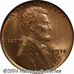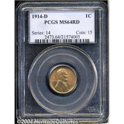 <B>1914-D<1C> MS64 Red PCGS.</B></I> This Choice quality '14-D is fully lustrous, an uncommon feature for a survivor of the issue. The color is a pleasing honey-orange shade, and both sides are boldly, if not sharply struck in all areas. Kept from Gem status by a few wispy carbon flecks, yet otherwise problem-free. <BR><BR><B>Important notice:</B> Heritage usually auctions material at the rate of 200-250 lots per hour. On some occasions eBay Live bid software or the Internet may not be able to keep up with the pace of the auction. We recommend placing a realistic absentee bid now as insurance to avoid disappointment. Occasionally the auctioneer may eliminate or reject an eBay Live bid, and the auctioneer may also reopen a lot after the close of the eBay live bidding (usually because we missed an audience bid), and may reject your bid even if it shows you as the winning bidder. By bidding via eBay Live, you agree that Heritage may award the lot to another bidder at its sole discretion under the circumstances described above or any other reasonable circumstances. Since eBay bids are not shown to us until we open the lot on the floor, we treat those bids just like floor bids. In most cases the floor responds before the eBay bid is presented to us, due to Internet lag time, so for consistency we have made it a policy that floor bids are always considered first over tie eBay live bids. Also please note that all Heritage lots purchased through eBay Live carry a 20% Buyer's Premium. Please make sure you read the Terms and Conditions before you bid. </span></font></tr></table></td></tr></table>
