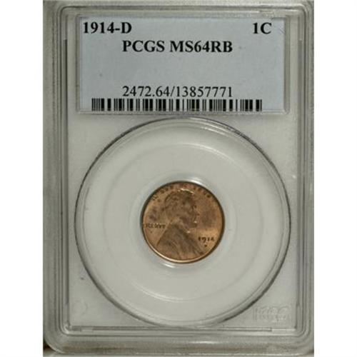 <B>1914-D 1C MS64 Red and Brown PCGS.</B></I> This key date near-Gem Red and Brown representative displays mostly copper-gold luster, imbued with some speckles of light tan. This is an exceptionally well struck example, as most show "slight softening of the numerals and lettering" (David Lange, 2005). A few minute marks limit the grade.<BR><BR><B>Coin Engraver:</B> Victor D. Brenner<BR><BR><b>Shipping:</b> Coins & Currency (<a target="_blank" href="http://www.heritageauctions.com/common/shipping.php">view shipping information</a>)