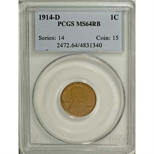 <B>1914-D 1C MS64 Red and Brown PCGS.</B></I> This nice, well-balanced near-Gem still shows considerable amounts of muted mint red, a bit more so on the reverse, with good detailing from a strong strike and no visible carbon. A tick in the right (facing) obverse field is perhaps all that precluded a Gem rating for this piece. A lot of key-date coin at a fraction of the Gem Red price.<BR><BR><B>Coin Engraver:</B> Victor D. Brenner<BR><BR><b>Shipping:</b> Coins & Currency (<a target="_blank" href="http://www.heritageauctions.com/common/shipping.php">view shipping information</a>)