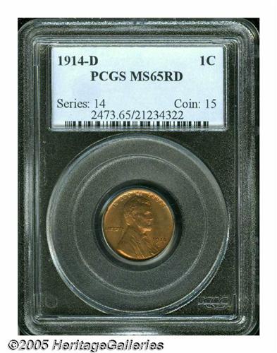 <B>1914-D<1C> MS65 Red PCGS.</B></I> The 1914-D boasts an original mintage of only 1.1 million pieces, which plays a major part in its place among the elite Lincoln Cent issues. Surviving Mint State examples, of which there are predictably few, tend to be faded to some degree. This piece, however, has bright, even cherry-red color that glistens and glows as the coin is rotated beneath a light. Well struck with no obvious abrasions and just the slightest flecks of carbon present.<BR><I>From The William Bickel Collection, Part One.</B></I>