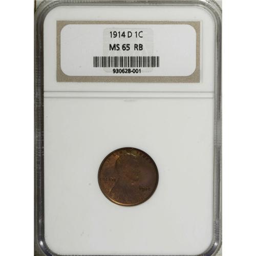 <B>1914-D 1C MS65 Red and Brown NGC.</B></I> The central reverse and much of the left obverse remains Red, while dusky sea-green and rose toning grace the right obverse and the reverse periphery. A satiny and attentively struck example of this series key, which is much tougher in Gem than the lower mintage 1909-S VDB and 1931-S. Struck from moderately rotated dies. Census: 36 in 65, 4 finer (11/06).<BR><BR><b>Shipping:</b> Coin/Currency (<a target="_blank" href="http://www.heritageauctions.com/common/shipping.php">view shipping information</a>)