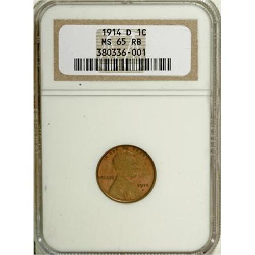 <B>1914-D 1C MS65 Red and Brown NGC.</B></I> Few issues in the Lincoln cent series garner the respect of the 1914-D. From a comparatively low mintage of just under 1.2 million pieces, and a reasonably low survival ratio, its scarcity in better Mint State grades is assured. The present Gem example is typically bold with remnants of faded orange color about the devices. Mattelike luster appears a bit more vibrant on the obverse. <BR><BR><B>Coin Engraver:</B> Victor D. Brenner<BR><BR><b>Shipping:</b> Coins & Currency (<a target="_blank" href="http://www.heritageauctions.com/common/shipping.php">view shipping information</a>)
