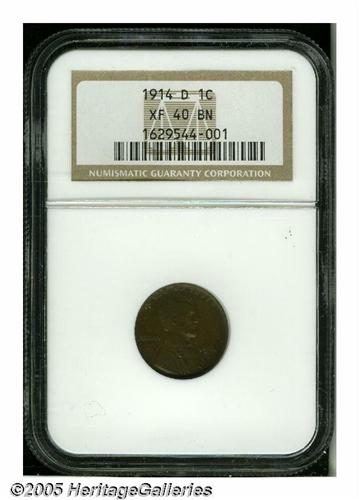 <B>1914-D<1C> XF40 NGC.</B></I> A moderately abraded deep brown series key. Wear on the hair above the ear and on the cheekbone is appropriate for the grade.