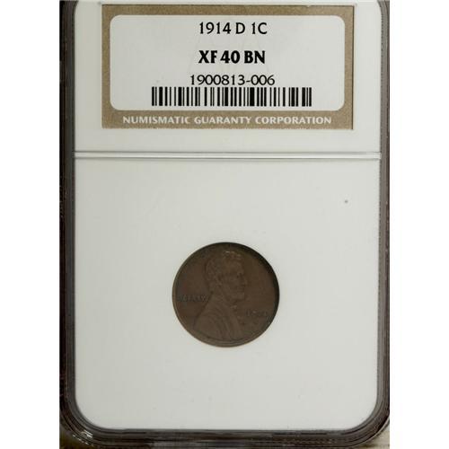 <B>1914-D 1C XF40 NGC.</B></I> NGC Census: (172/846). PCGS Population (186/508). Mintage: 1,193,000. Numismedia Wsl. Price for NGC/PCGS coin in XF40: $540. (#2471)<BR><BR><b>Shipping:</b> Coins & Currency (<a target="_blank" href="http://www.heritageauctions.com/common/shipping.php">view shipping information</a>)