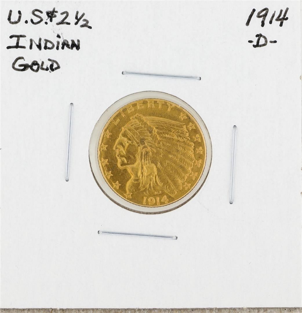 One 1914-D $2 1/2 Indian Head Gold Coin.