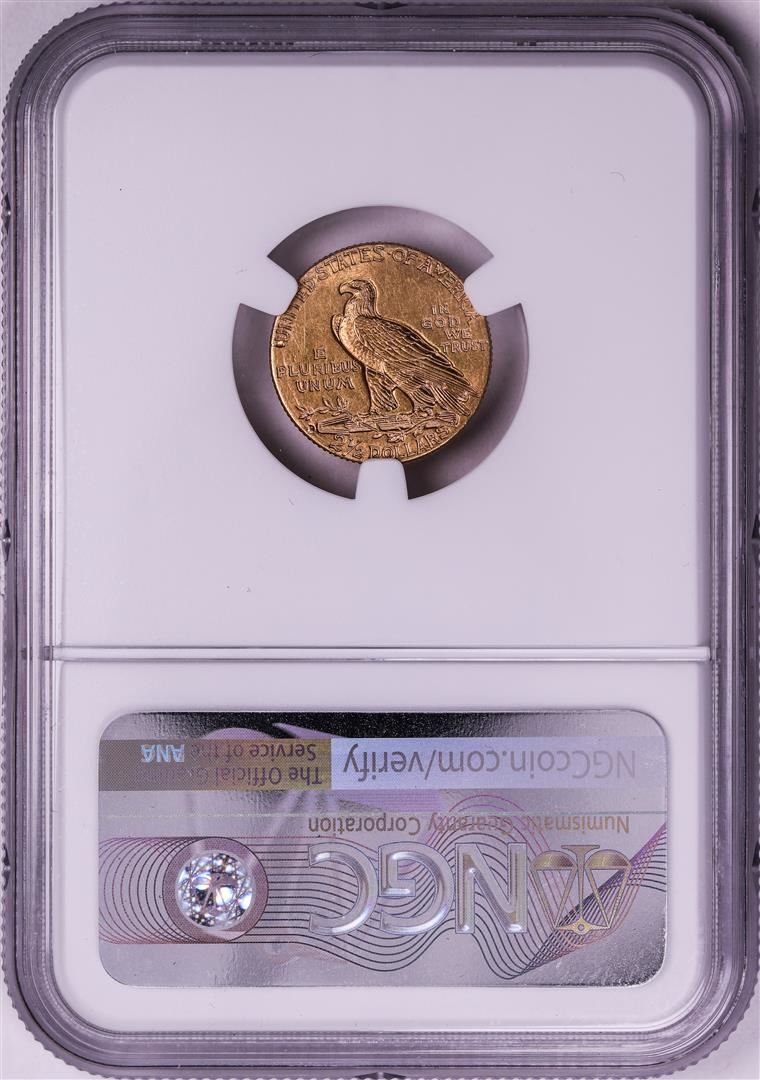 One 1914-D $2 1/2 Indian Head Quarter Eagle Gold Coin NGC AU58. NGC Certified.
