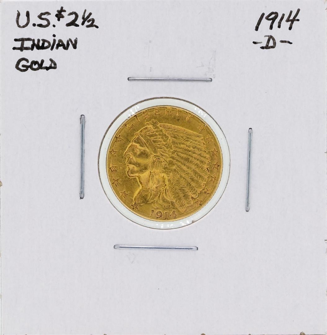 One 1914-D $2 1/2 Indian Head Quarter Eagle Gold Coin.