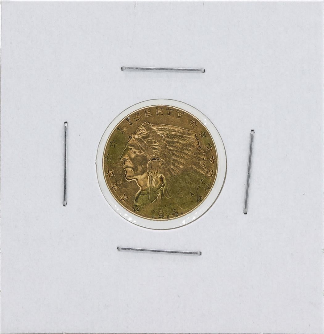 One 1914-D $2 1/2 Indian Head Quarter Eagle Gold Coin.