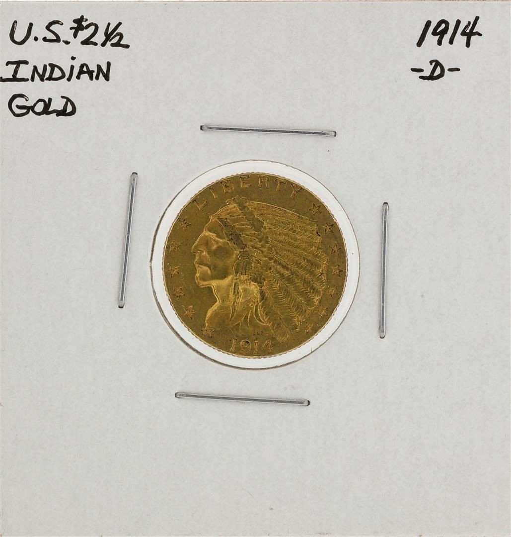 One 1914-D $2 1/2 Indian Head Quarter Eagle Gold Coin.