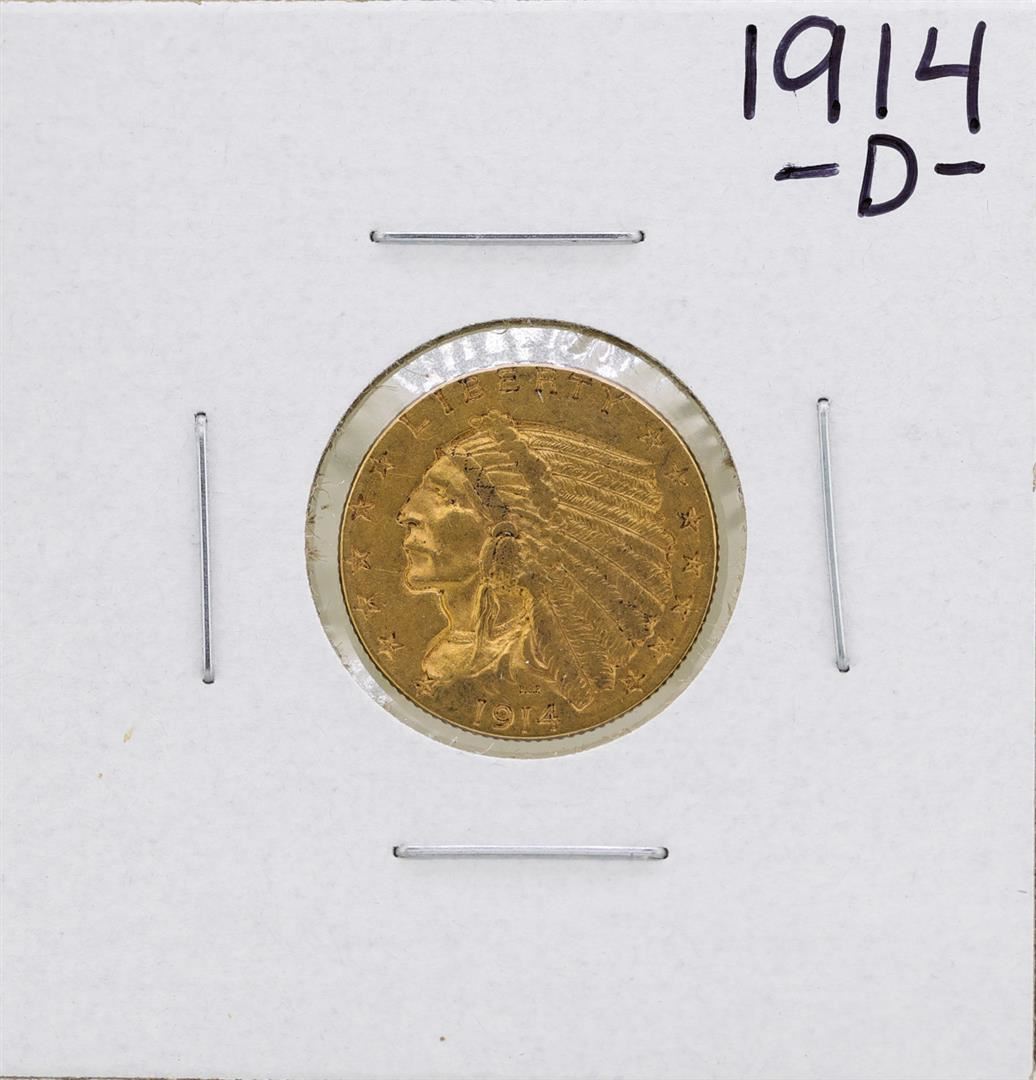 One 1914-D $2 1/2 Indian Head Quarter Eagle Gold Coin.