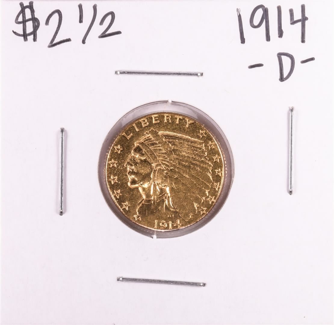 One 1914-D $2 1/2 Indian Head Quarter Eagle Gold Coin.