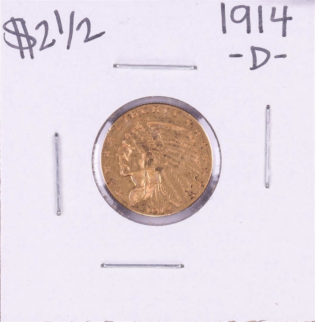 One 1914-D $2 1/2 Indian Head Quarter Eagle Gold Coin.