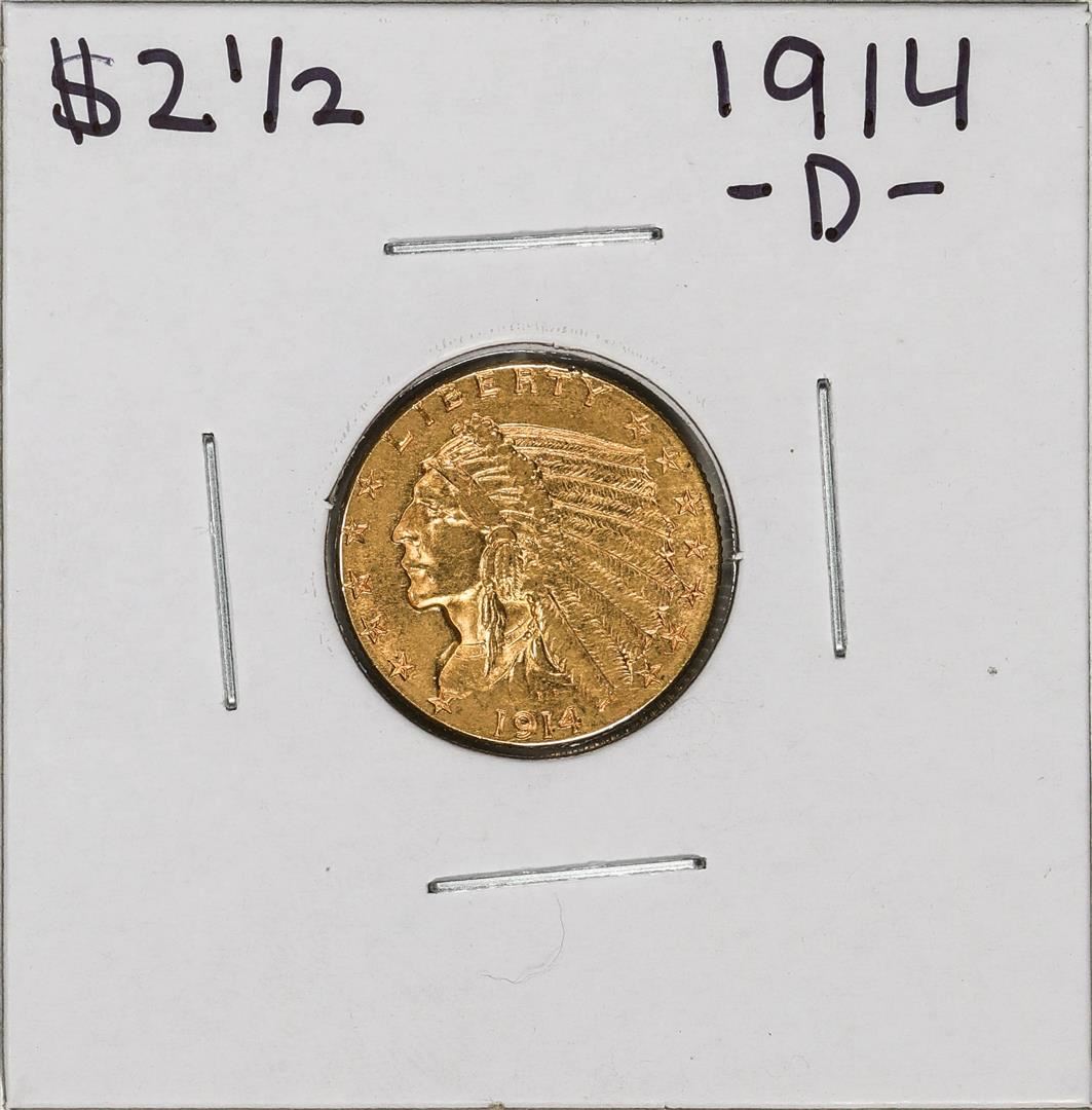 One 1914-D $2 1/2 Indian Head Quarter Eagle Gold Coin.