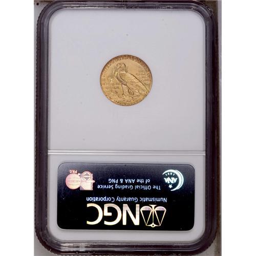 <B>1914-D<$2 1/2> MS62 NGC.</B></I> Full satiny luster and pleasing mint-green and gold-orange color. The trailing feather on the headdress is softly struck, as is often seen on this scarcer Indian quarter eagle issue, and a shallow pinscratch crosses through RIB on the reverse. A prominent date from this short and popular series. <BR><BR><B>Important notice:</B> Heritage usually auctions material at the rate of 200-250 lots per hour. On some occasions eBay Live bid software or the Internet may not be able to keep up with the pace of the auction. We recommend placing a realistic absentee bid now as insurance to avoid disappointment. Occasionally the auctioneer may eliminate or reject an eBay Live bid, and the auctioneer may also reopen a lot after the close of the eBay live bidding (usually because we missed an audience bid), and may reject your bid even if it shows you as the winning bidder. By bidding via eBay Live, you agree that Heritage may award the lot to another bidder at its sole discretion under the circumstances described above or any other reasonable circumstances. Since eBay bids are not shown to us until we open the lot on the floor, we treat those bids just like floor bids. In most cases the floor responds before the eBay bid is presented to us, due to Internet lag time, so for consistency we have made it a policy that floor bids are always considered first over tie eBay live bids. Also please note that all Heritage lots purchased through eBay Live carry a 20% Buyer's Premium. Please make sure you read the Terms and Conditions before you bid. This lot is being auctioned in conjunction with a live floor auction by Heritage Galleries & Auctioneers. All final auction and invoice information will be supplied by Heritage Galleries & Auctioneers, and all other information should be considered preliminary. Lot:2505 <BR><BR><B>Winning Notification and Billing:</B> After the FINAL session in this auction is complete, Heritage will send e-mail and snail mail invoices. This process normally takes several days. All final auction and invoice information will be supplied by Heritage Galleries & Auctioneers, and all other information should be considered preliminary. <BR><BR>This auction will be conducted on a live auction floor and over the Internet through eBay Live. If you choose to place an absentee bid, please take a moment to <font color='#0000ff'><u><a href='http://pages.ebay.com/liveauctions/help/before/laabsentee.html'>learn how eBay Live absentee bidding works</a></u></font><font color='#000000'>
