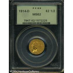 1914-D $2 1/2 MS62 PCGS. Deep peach-gold patina, a 1914-D $2 1/2 MS62 PCGS.
