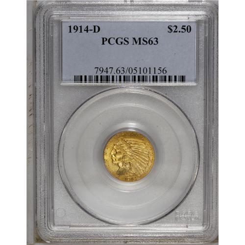 1914-D $2 1/2 MS63 PCGS. Select and nicely struck with