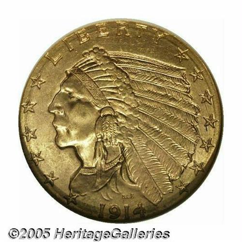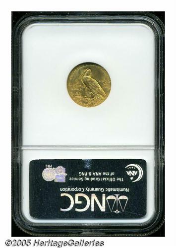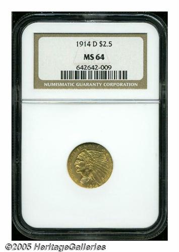 <B>1914-D<$2 1/2> MS64 NGC.</B></I> Bright yellow-gold luster throughout and very appealing. The strike is full, and there are no surface problems to speak of. One of the scarcer dates from this series, and a coin which is very difficult and far more expensive to locate in higher grades.