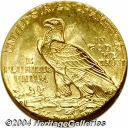<B>1914-D<$2 1/2> MS64 NGC.</B></I> In their reference work <I>A Collector's Guide to Indian Head Quarter Eagles,</B></I> Michael Fuljenz and Douglas Winter opine that "the 1914-D is an issue whose true rarity was not understood until a few years ago. Many casual observers still feel that this is not a rare coin, but it is actually the third rarest Indian Head Quarter Eagle in terms of its overall rarity and one of the true rarities in the series in higher Uncirculated grades." This lovely orange-gold near-Gem has a good strike, generally clean fields, and bright shimmering luster. <BR><BR><B>Important notice:</B> Heritage usually auctions material at the rate of 200-250 lots per hour. On some occasions eBay Live bid software or the Internet may not be able to keep up with the pace of the auction. We recommend placing a realistic absentee bid now as insurance to avoid disappointment. Occasionally the auctioneer may eliminate or reject an eBay Live bid, and the auctioneer may also reopen a lot after the close of the eBay live bidding (usually because we missed an audience bid), and may reject your bid even if it shows you as the winning bidder. By bidding via eBay Live, you agree that Heritage may award the lot to another bidder at its sole discretion under the circumstances described above or any other reasonable circumstances. Since eBay bids are not shown to us until we open the lot on the floor, we treat those bids just like floor bids. In most cases the floor responds before the eBay bid is presented to us, due to Internet lag time, so for consistency we have made it a policy that floor bids are always considered first over tie eBay live bids. Also please note that all Heritage lots purchased through eBay Live carry a 20% Buyer's Premium. Please make sure you read the Terms and Conditions before you bid. </span></font></tr></table></td></tr></table>