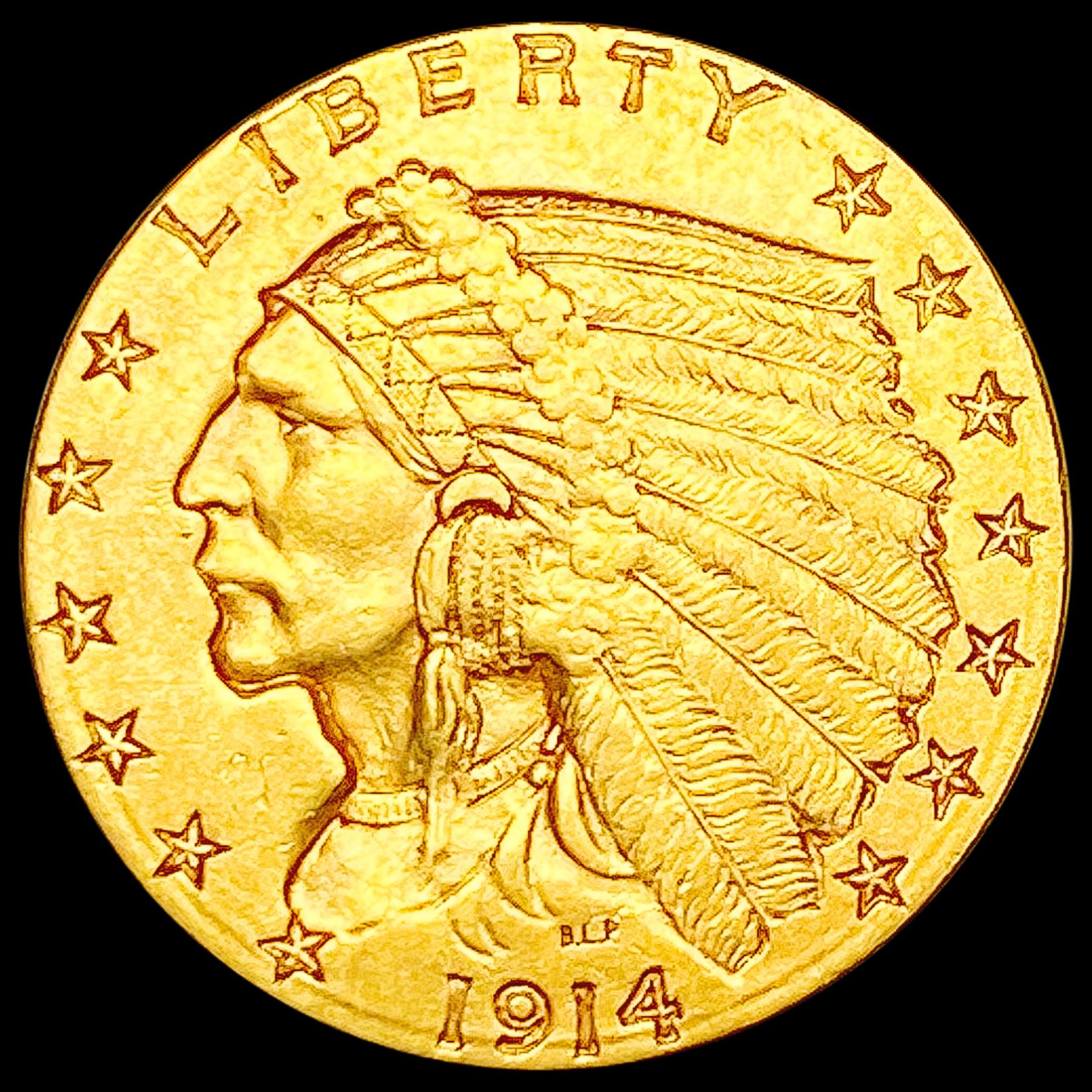 1914-D $2.50 Gold Quarter Eagle CLOSELY UNCIRCULATED
