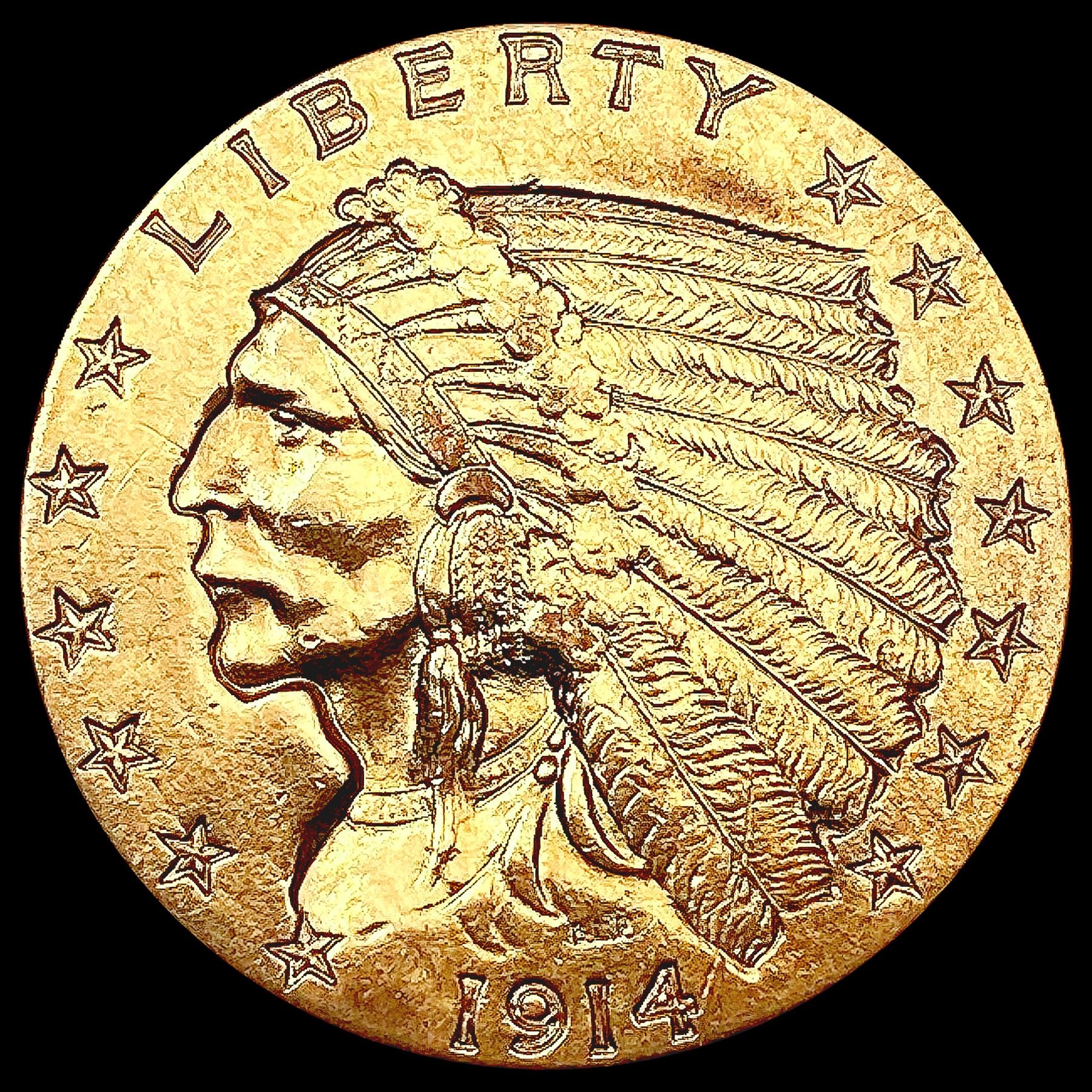 1914-D $2.50 Gold Quarter Eagle CLOSELY UNCIRCULAT