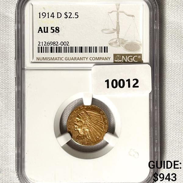 1914-D $2.50 Gold Quarter Eagle NGC-AU58