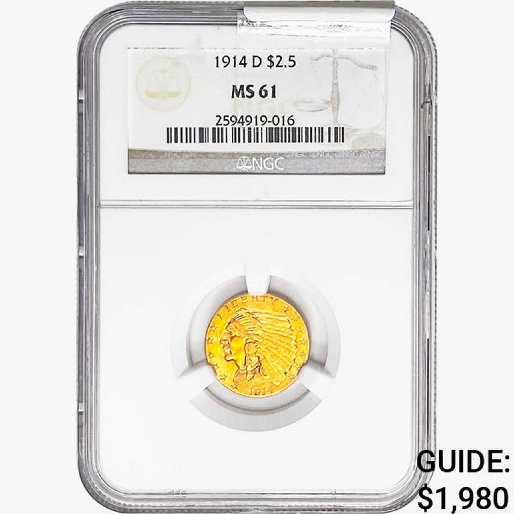 1914-D $2.50 Gold Quarter Eagle NGC MS61