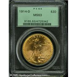 <B>1914-D $20 MS63 PCGS.</B></I> A premium quality example with sparkling luster and relatively few contact marks. Lot:9547