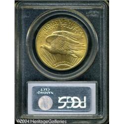 1914-D $20 MS64 PCGS. A bright, frosty example wit <B>1914-D $20 MS64 PCGS.</B></I> A bright, frosty example with nice golden-orange coloration, a good strike, and a few grade-limiting contact marks on the obverse. <BR><BR><B>Important notice:</B> Heritage usually auctions material at the rate of 200-250 lots per hour. On some occasions eBay Live bid software or the Internet may not be able to keep up with the pace of the auction. We recommend placing a realistic absentee bid now as insurance to avoid disappointment. Occasionally the auctioneer may eliminate or reject an eBay Live bid, and the auctioneer may also reopen a lot after the close of the eBay live bidding (usually because we missed an audience bid), and may reject your bid even if it shows you as the winning bidder. By bidding via eBay Live, you agree that Heritage may award the lot to another bidder at its sole discretion under the circumstances described above or any other reasonable circumstances. Since eBay bids are not shown to us until we open the lot on the floor, we treat those bids just like floor bids. In most cases the floor responds before the eBay bid is presented to us, due to Internet lag time, so for consistency we have made it a policy that floor bids are always considered first over tie eBay live bids. Also please note that all Heritage lots purchased through eBay Live carry a 20% Buyer's Premium. Please make sure you read the Terms and Conditions before you bid. This lot is being auctioned in conjunction with a live floor auction by Heritage Galleries & Auctioneers. All final auction and invoice information will be supplied by Heritage Galleries & Auctioneers, and all other information should be considered preliminary. Lot:7137