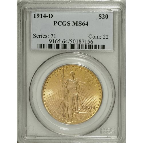 1914-D $20 MS64 PCGS. The ''14-D is readily available
