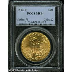 1914-D $20 MS64 PCGS. Well struck with sparkling,