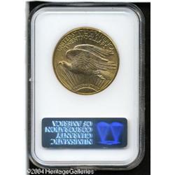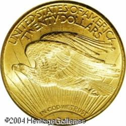 1914-D $20 MS65 NGC. Extraordinarily clean with br <B>1914-D $20 MS65 NGC.</B></I> Extraordinarily clean with bright, even matte-like surfaces. Fully struck with a minimum of surface marks, and seldom located in higher grades. <BR><BR><B>Important notice:</B> Heritage usually auctions material at the rate of 200-250 lots per hour. On some occasions eBay Live bid software or the Internet may not be able to keep up with the pace of the auction. We recommend placing a realistic absentee bid now as insurance to avoid disappointment. Occasionally the auctioneer may eliminate or reject an eBay Live bid, and the auctioneer may also reopen a lot after the close of the eBay live bidding (usually because we missed an audience bid), and may reject your bid even if it shows you as the winning bidder. By bidding via eBay Live, you agree that Heritage may award the lot to another bidder at its sole discretion under the circumstances described above or any other reasonable circumstances. Since eBay bids are not shown to us until we open the lot on the floor, we treat those bids just like floor bids. In most cases the floor responds before the eBay bid is presented to us, due to Internet lag time, so for consistency we have made it a policy that floor bids are always considered first over tie eBay live bids. Also please note that all Heritage lots purchased through eBay Live carry a 20% Buyer's Premium. Please make sure you read the Terms and Conditions before you bid. This lot is being auctioned in conjunction with a live floor auction by Heritage Galleries & Auctioneers. All final auction and invoice information will be supplied by Heritage Galleries & Auctioneers, and all other information should be considered preliminary. Lot:7143