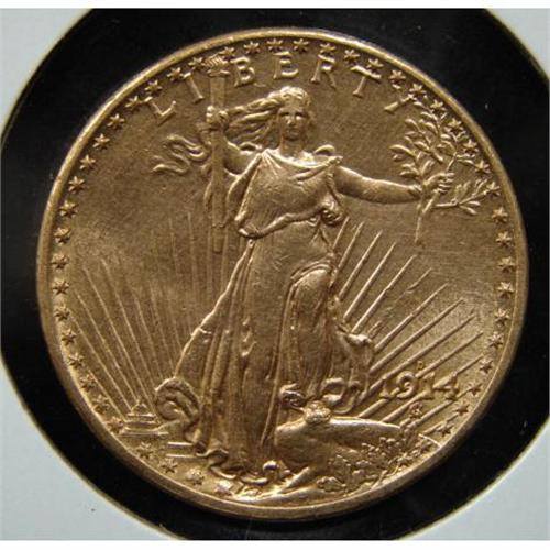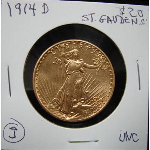1914-D $20 ST. GAUDENS GOLD COIN. Unc.
