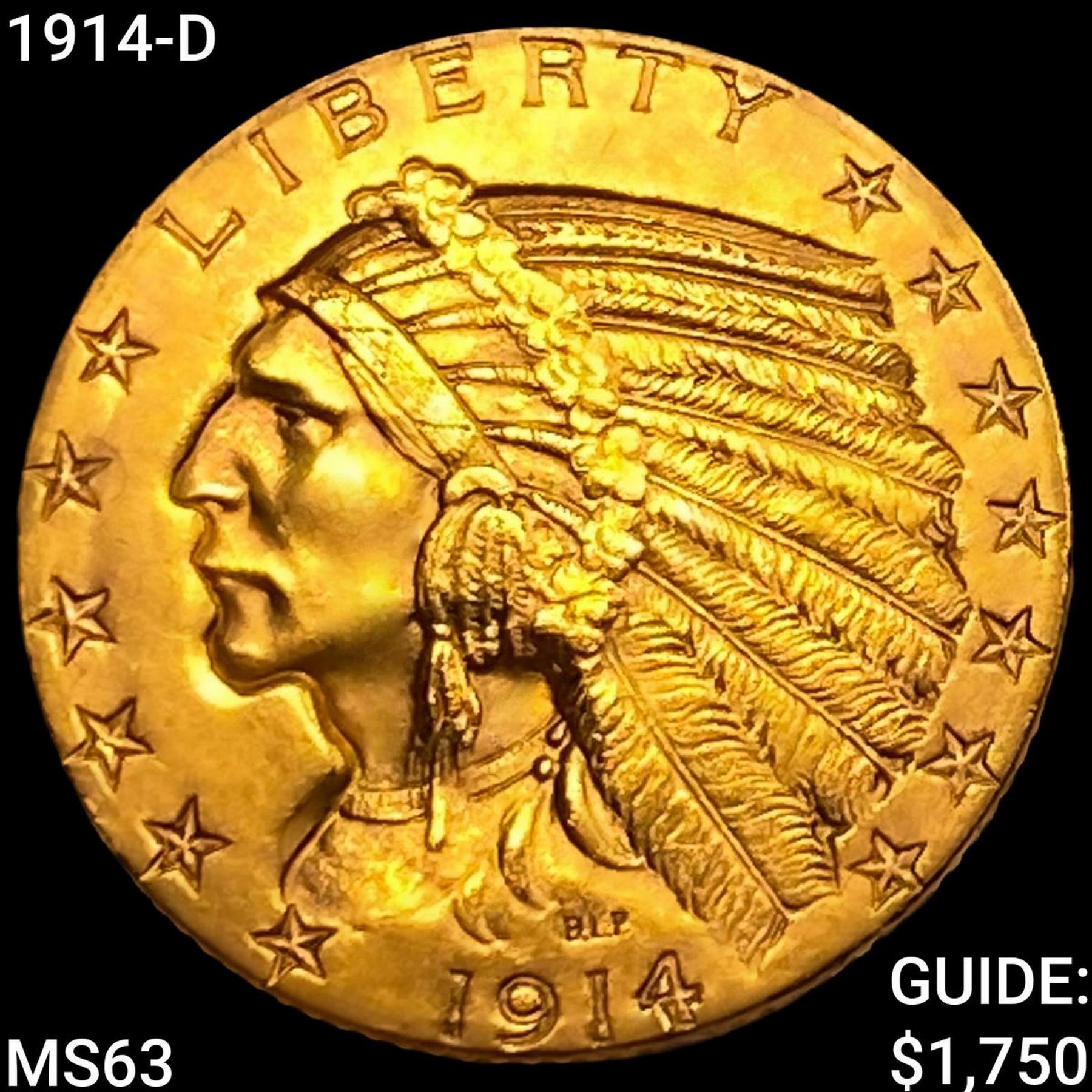 1914-D $5 Gold Half Eagle CHOICE BU