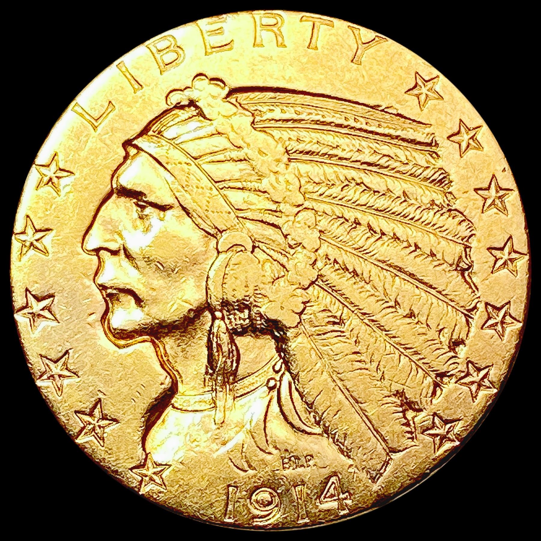 1914-D $5 Gold Half Eagle CLOSELY UNCIRCULATED