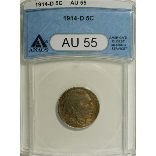 1914-D 5C AU55 ANACS. NGC Census: (23/574). PCGS P