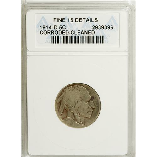 1914-D 5C --Cleaned, Corroded--ANACS. Fine 15 Details