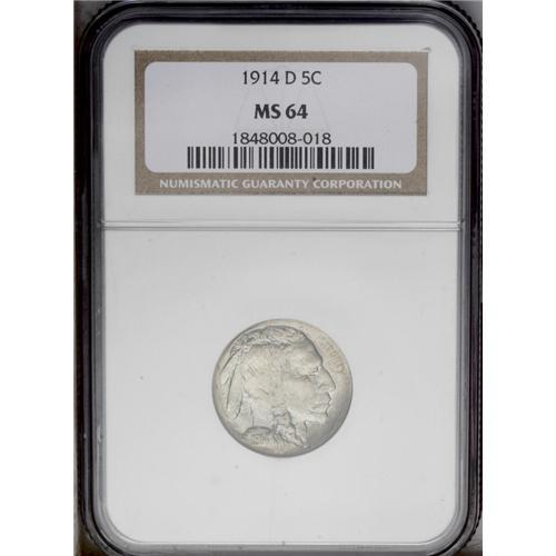 1914-D 5C MS64 NGC. A scarce and highly regarded Buffa 1914-D[5C] MS64 NGC.