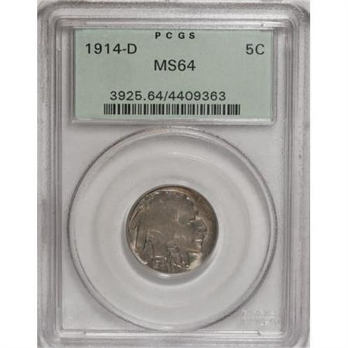 <B>1914-D 5C MS64 PCGS.</B></I> Both sides offer quicksilver luster beneath luminous steel-gray, violet, rose, and tan-gold patina. Well-defined at the margins, though the center of the portrait shows softness.<BR><BR><B>Coin Engraver:</B> James E. Fraser<BR><BR><b>Shipping:</b> Coins & Currency (<a target="_blank" href="http://www.heritageauctions.com/common/shipping.php">view shipping information</a>)