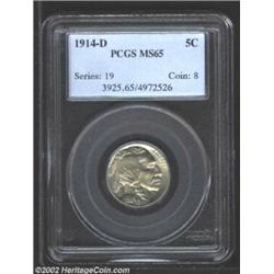 1914-D 5C MS65 PCGS. A solid Gem example of this scarce, semi-key in the early Buffalo Nickel series