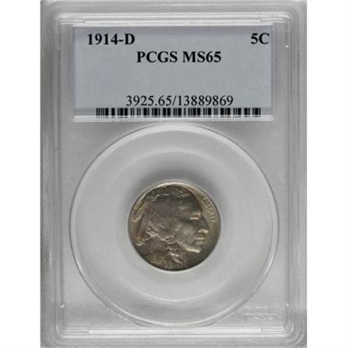 <B>1914-D 5C MS65 PCGS.</B></I> Well detailed with a smooth, satin-like appearance beneath delicate golden patina. The popularity of the 1914-D Buffalo perhaps stems from the notoriety of its Lincoln counterpart.<BR><BR><B>Coin Engraver:</B> James E. Fraser<BR><BR><b>Shipping:</b> Coins & Currency (<a target="_blank" href="http://www.heritageauctions.com/common/shipping.php">view shipping information</a>\)