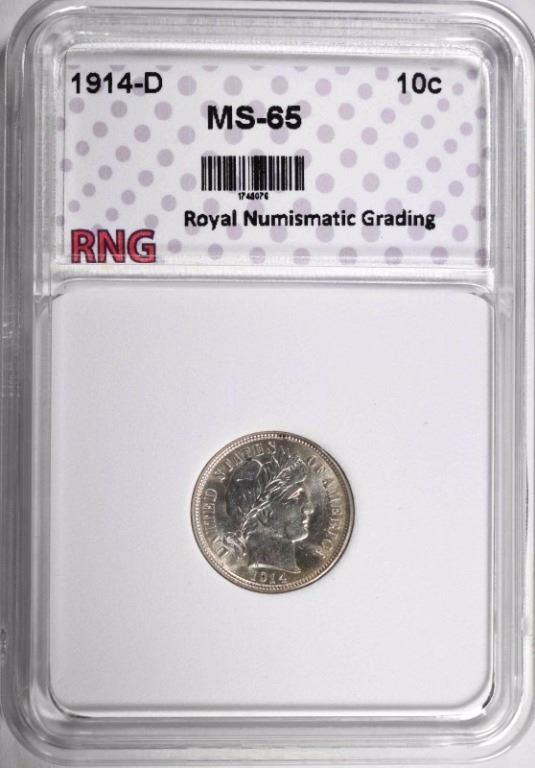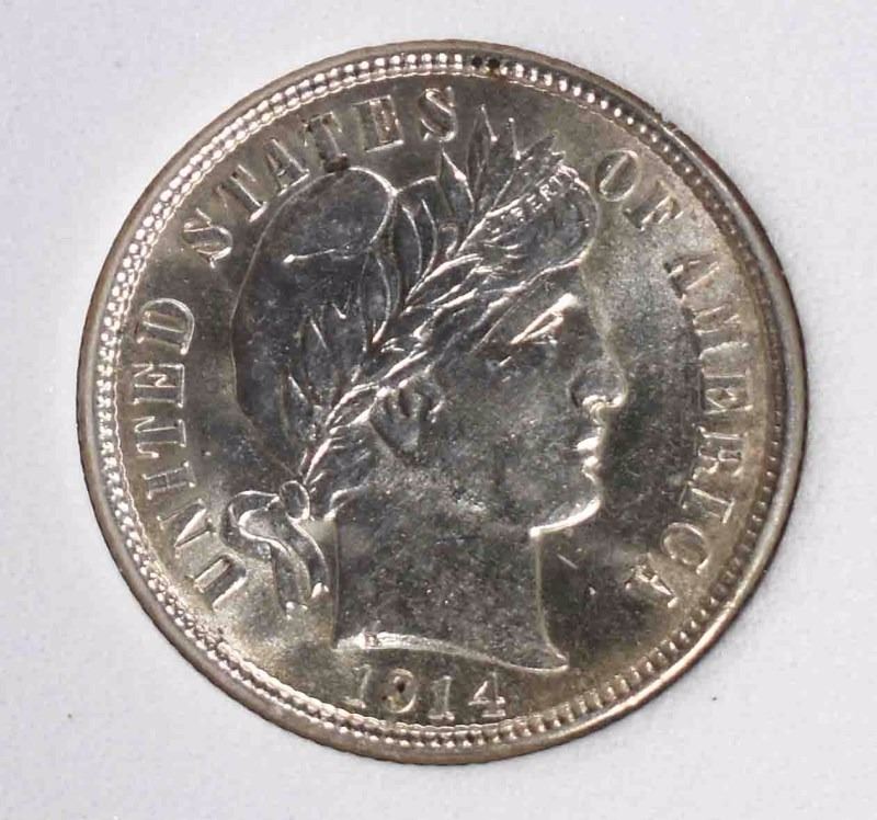 1914-D BARBER DIME RNG GEM BU ESTIMATE $550 - $575.