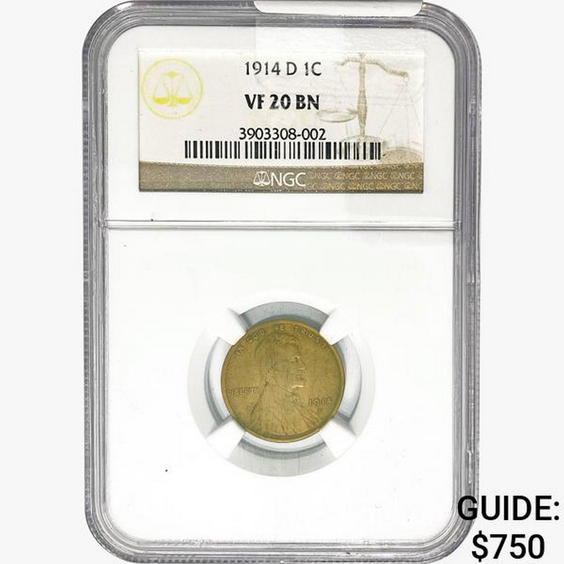 1914-D BN Wheat Cent NGC VF20