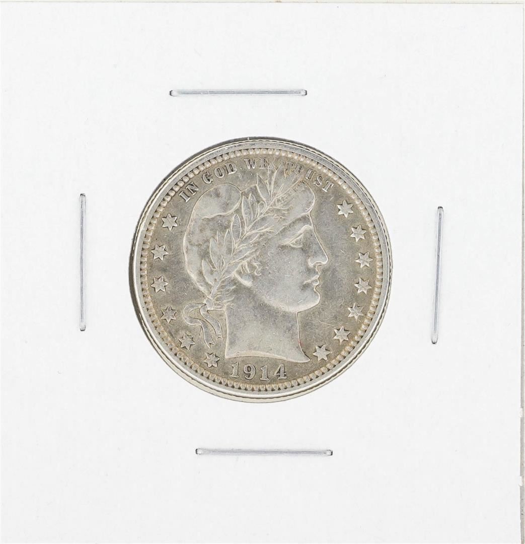 One 1914-D Barber Quarter Silver Coin.