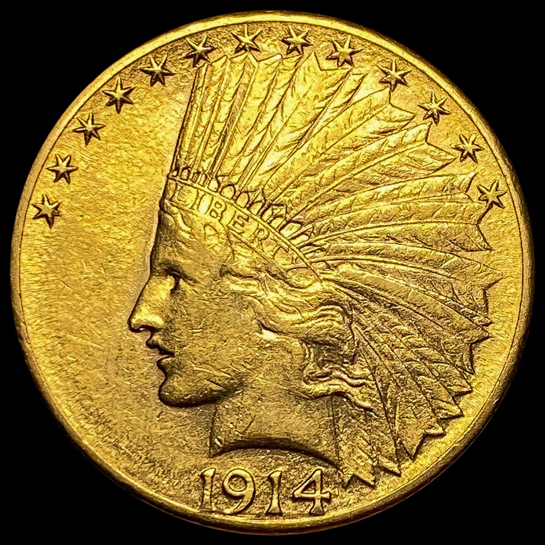 1914-D Indian Head Eagle $10 Coin CLOSELY UNCIRCULAT